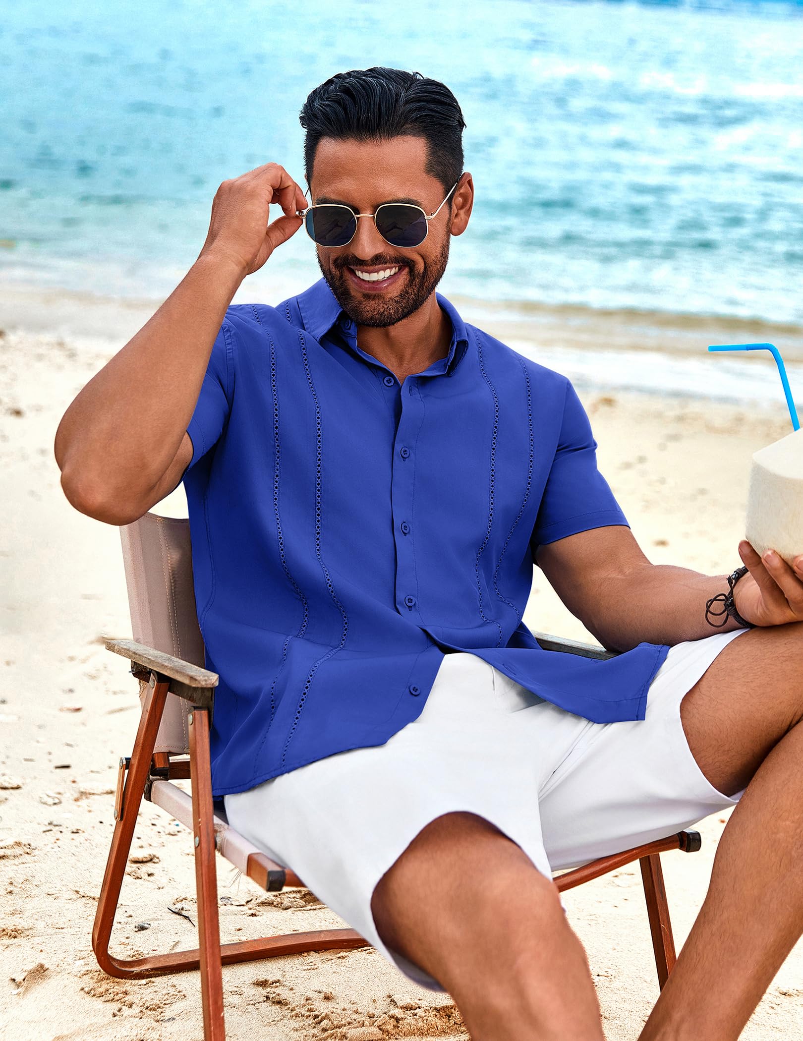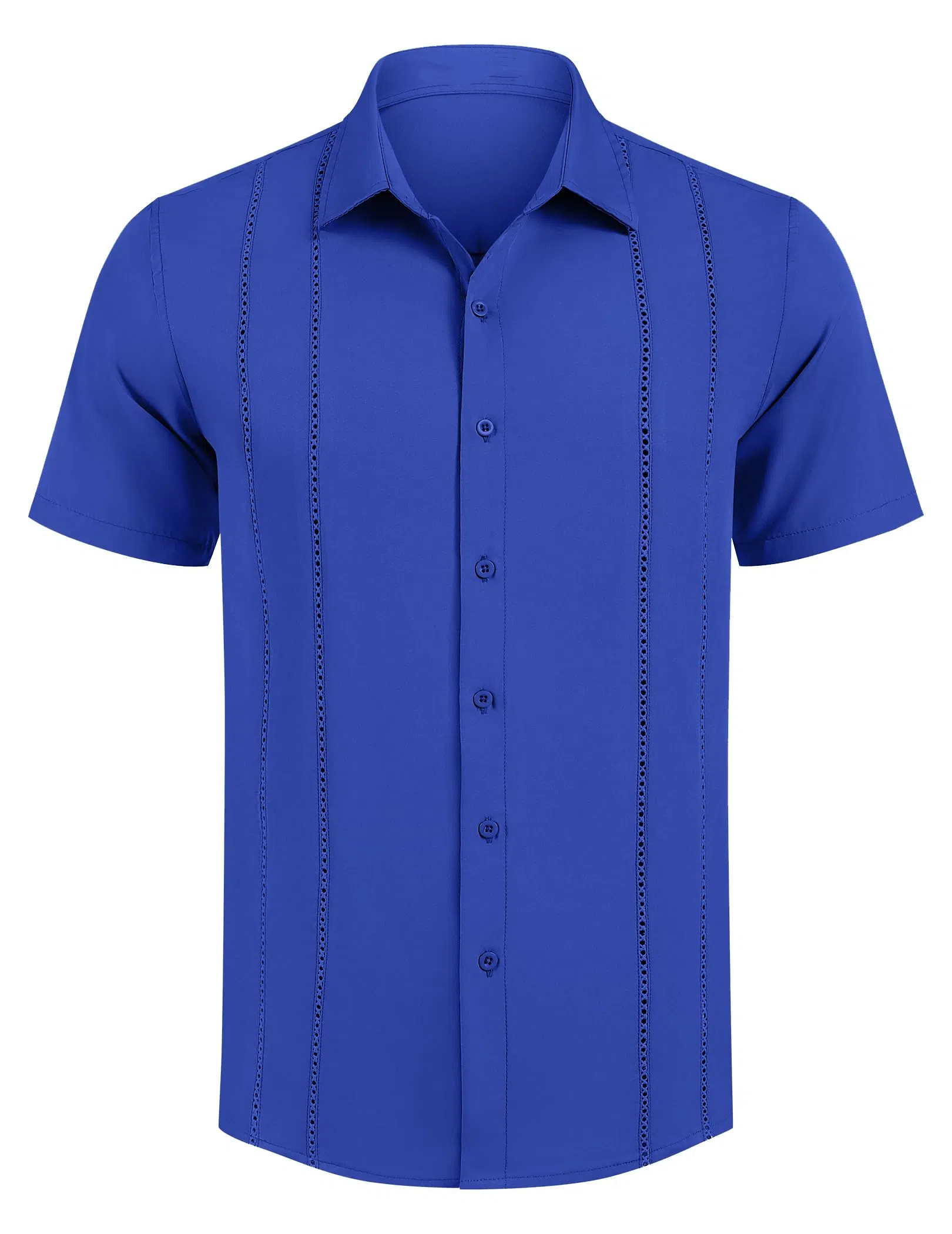 Cuban Guayabera Style - Men's Guayabera Shirt features a wide-angle collar, short sleeves, button closure and hollow vertical pleats. The thoughtful design details make this shirt more fashionable and classic.