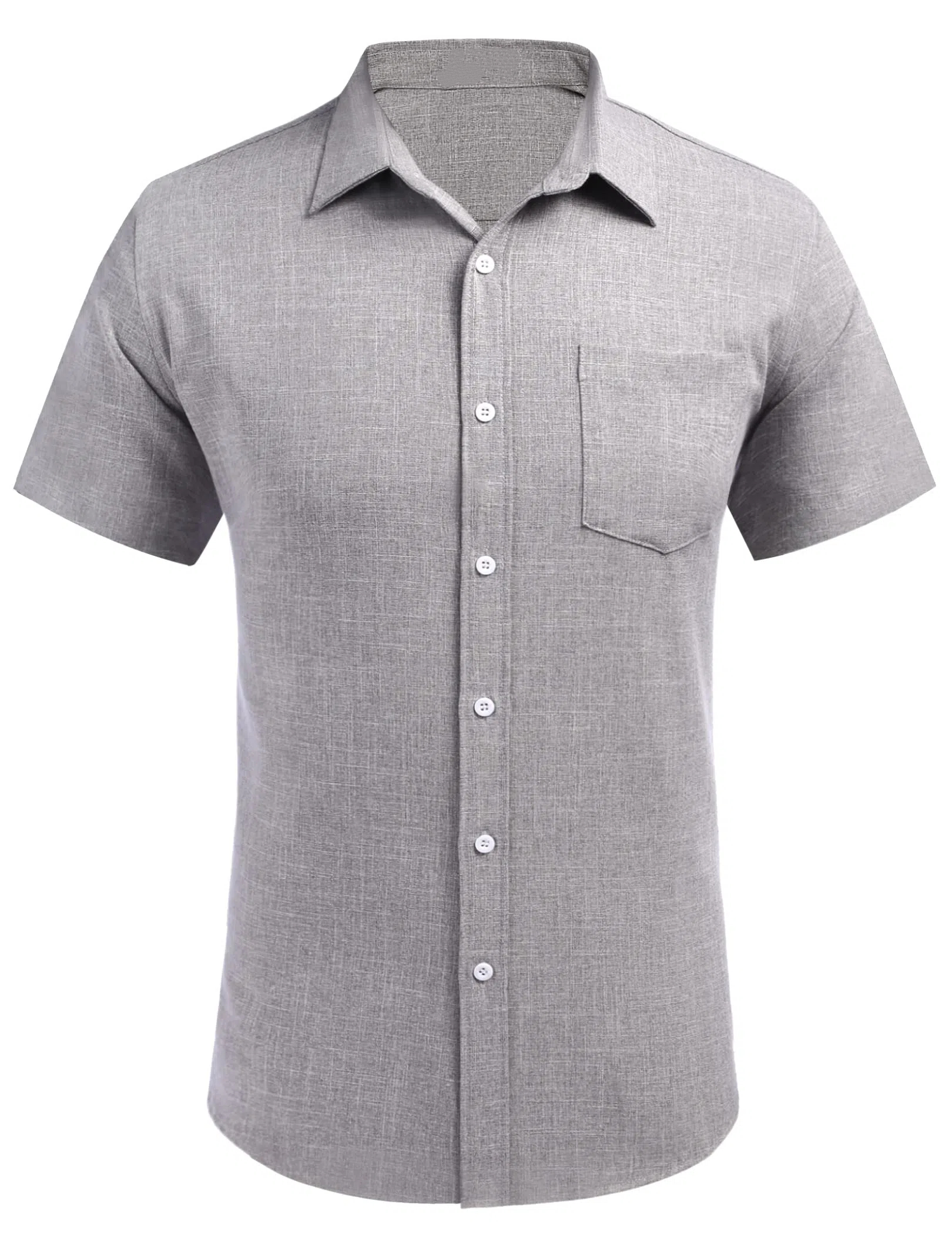 Classic Fashion Look --- Men's Linen Casual Business Slim Button Shirt, well made, slightly narrowed at the waist for a fitted cut. Pair with solid color T-shirts, sport coats, chinos, jeans and shorts for a perfect look.