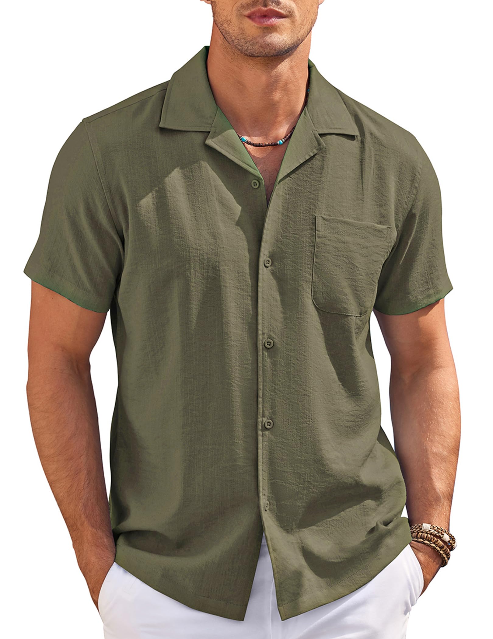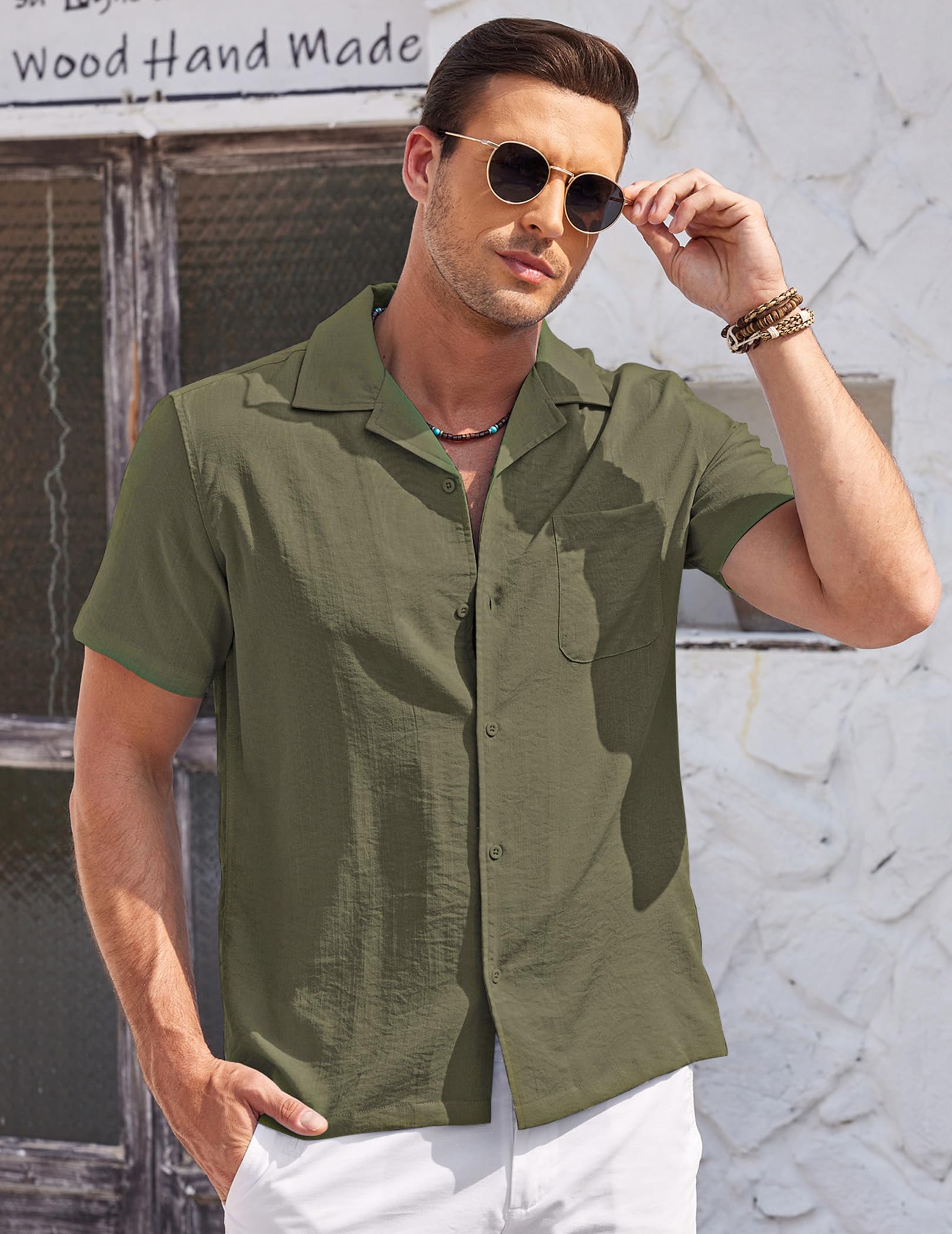 [Classic Design] This shirt features a simple button closure and chest pocket design, making you look capable and sophisticated. The regular fit provides more room and comfort for the torso, arms and shoulders, and fits most normal body types.