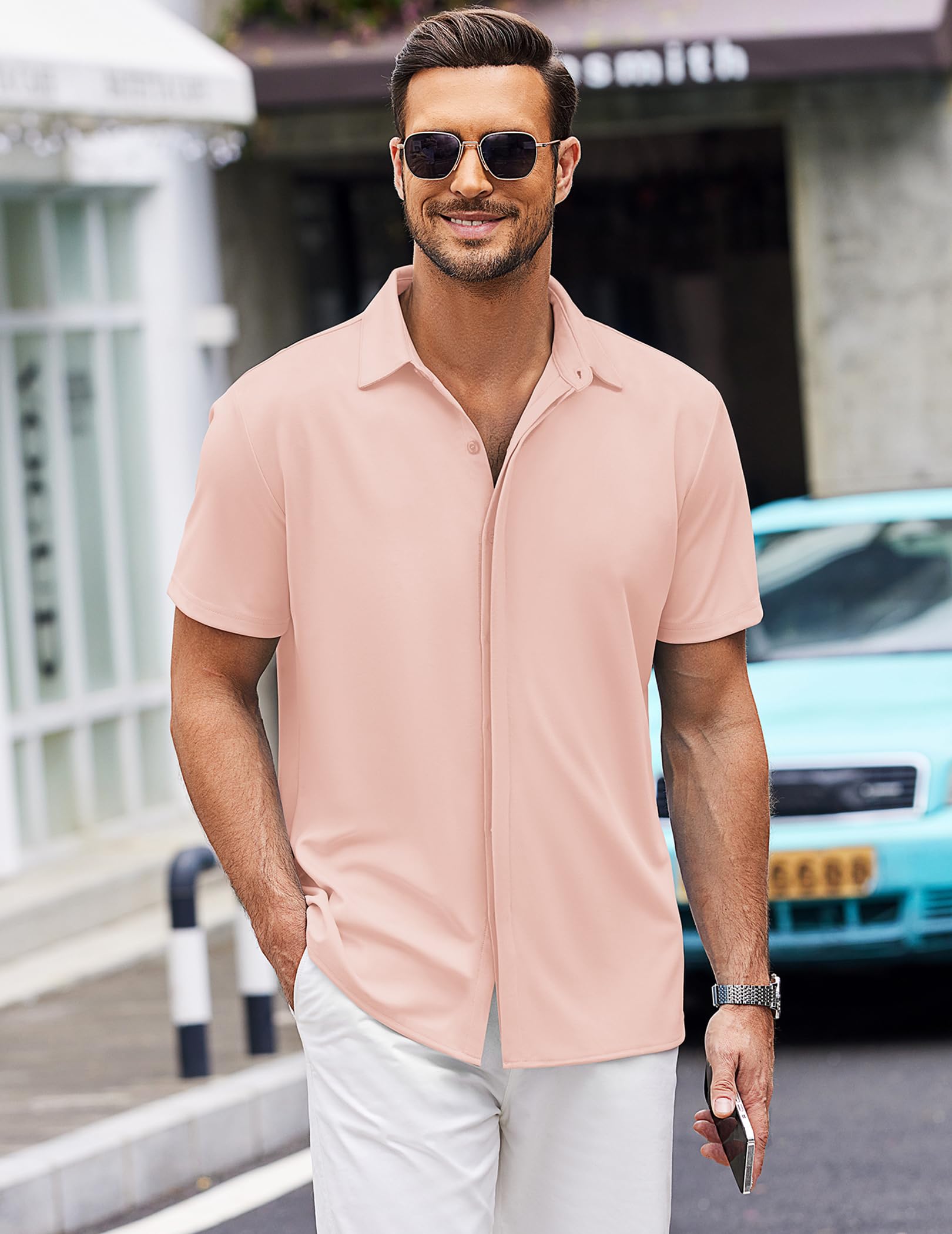 Classic Design: Men's Short Sleeve Button Shirt features short sleeves, wide-angle collar, button closure and solid color design, which is simple and classic, creating a casual and fashionable look for you, making you stand out from the crowd.