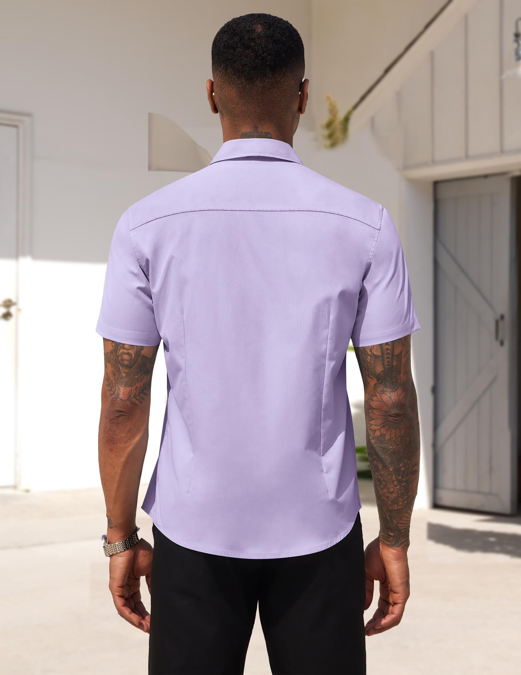 [Pre-Shrunk Fabric] Men's formal shirt is made of pre-shrunk fabric, which is lightweight, breathable and slightly stretchy. Wear this shirt in warm weather to keep you comfortable and cool all day long! Machine washable for your convenience.