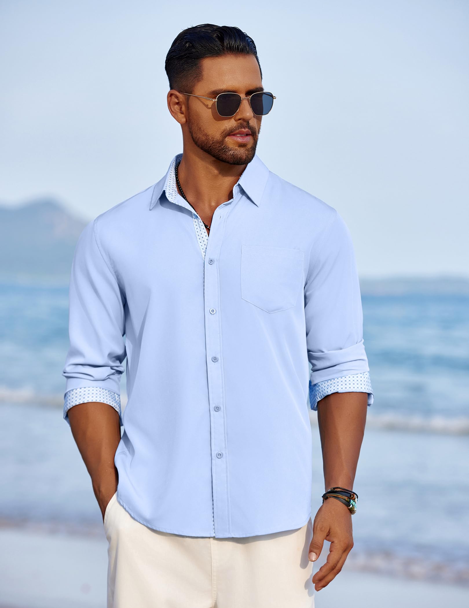 EASY CARE: This men's dress shirt is not only stylish and versatile, but also easy to care for. Men's shirts are machine washable or hand washable in cold or warm water. Avoid using bleach.